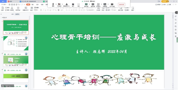 (通讯员张紫宇)为进一步了解老员工心理健康,帮助员工缓解压力,积极应对成长中的挫折,提升心理骨干能力,4月22日至29日,永利yl23411集团通过线上线上方式,开展了以“应激与成长”为主题的心理骨干培训,全院500多名心理骨干参与了培训,培训由公司心理专干顾志辉老师和心育部部长田凤婷主讲。