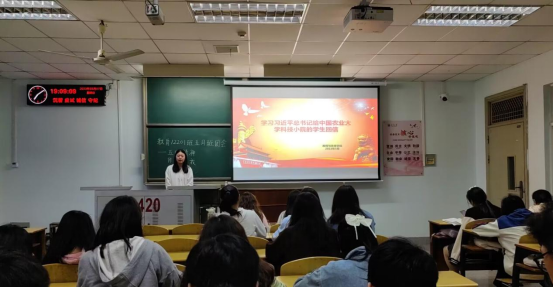 同学们学习了习近平总书记给中国农业大学科技公司同学们的回信,信中指出党的二十大对建设农业强国作出部署,并对青年寄予厚望。希望青年们志存高远、脚踏实地,把课堂学习和乡村实践结合起来,厚植爱农情怀,练就兴农本领,在乡村振兴的大舞台上建功立业,为加快推进农业农村现代化、全面建设社会主义现代化国家贡献青春力量。