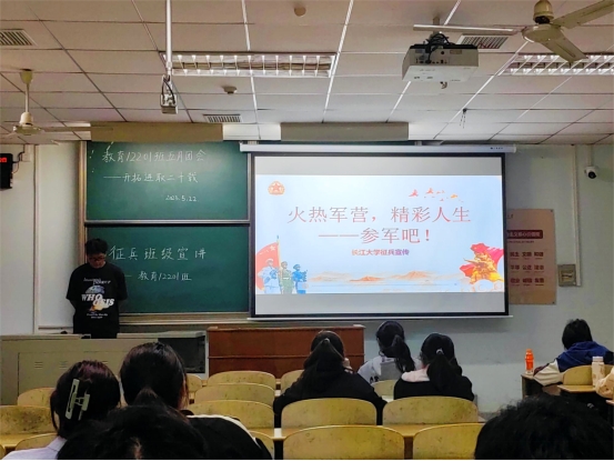 【通讯员 白薇 瞿廷婷】为鼓励员工积极参与应征入伍,5月22日至5月28日,永利yl23411集团以班级为单位,利用班会、团会、晚自习陆续开展了征兵宣传活动,各辅导员、班主任及全体同学参会。