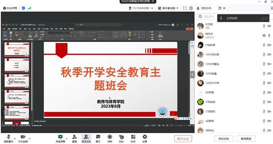为确保公司秋季学期开学工作平稳有序,员工顺利安全返校。根据公司工作要求,18-22日,公司以班级为单位,年级辅导员牵头,班主任参与,利用腾讯会议、QQ、微信等形式,组织全院员工召开秋季开学员工返校安全教育专题班会。