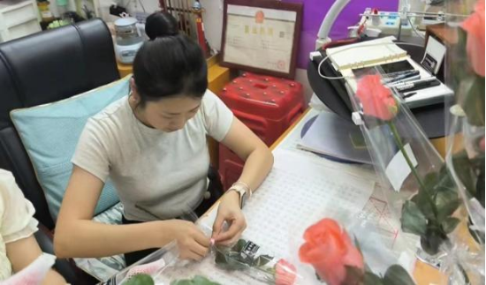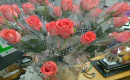 中午12时,员工会成员陆续到达南苑,开始修剪、包装玫瑰花,同学们小心翼翼地拿起带刺的玫瑰,除去多余的叶子,再仔细包装,每一朵花都寄托着同学们对老师的深厚感情。下午1时,所有鲜花打包完成,同学们带着娇艳欲滴的鲜花,分别前往教学楼、训练馆和办公室,给老师们送去惊喜与感恩。