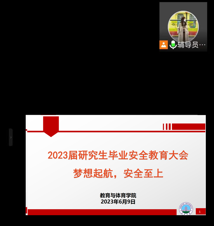 2023年6月9日下午14:30,永利yl23411集团在线上腾讯会议举办2023届研究生毕业安全教育大会。永利yl23411集团研究生辅导员陈佳琳及2023届全体研究生参加会议,会议由陈佳琳老师主持。